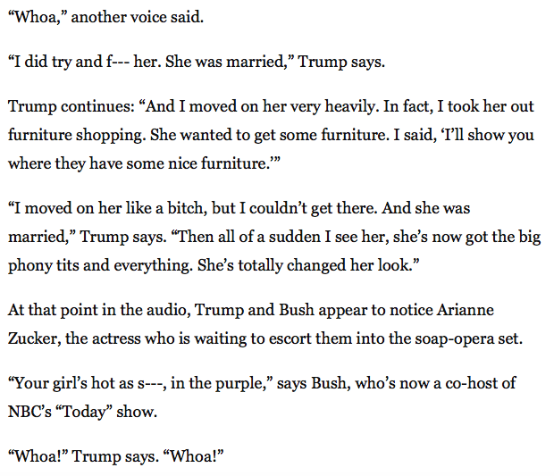 Mod: In case you've been living under a rock these last 24 hours, or only watch Fox News, here is the video that has now completely sunk the clinically insane Donald "The American Dream is Dead" Trump presidential campaign.