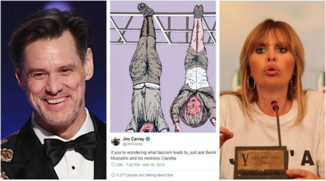 Carrey wrote in the original Tweet that started the feud: “If you’re wondering what fascism leads to, just ask Benito Mussolini and his mistress Claretta.”