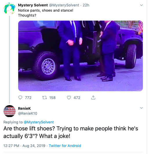 Some eagle eyed people on Twitter noticed that Trump appeared to be wearing high heeled shoes, or lifts.