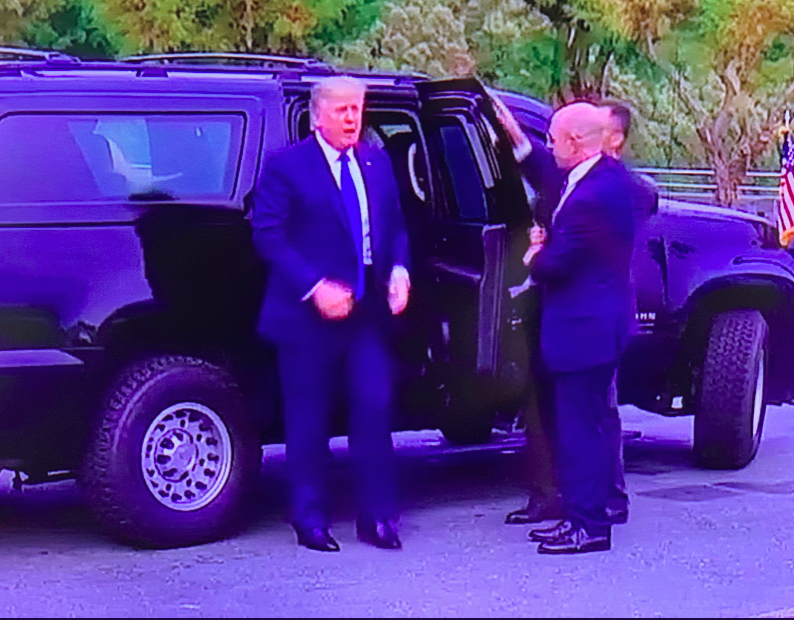 Friday night he attended a dinner, and the camera watched him arrive and jump out of his presidential limo.