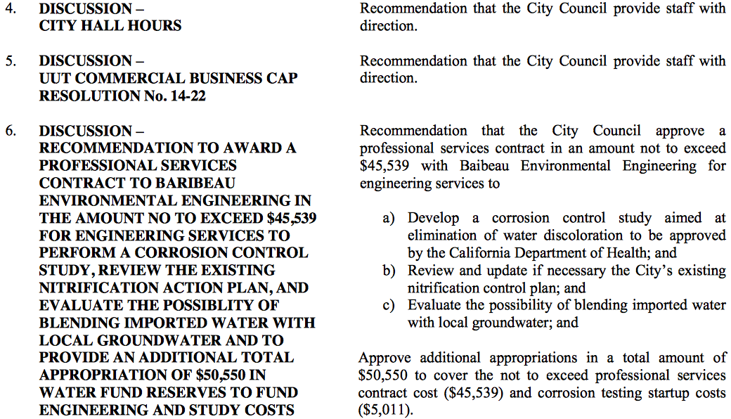 We discussed what is at stake for Sierra Madre here yesterday. It was not a pretty story. First, this consultant will set our beleaguered water division back a cool $50,000. That has to be said. The other matter at hand, the possible nitrification of our drinking water, which includes the potential for severe health consequences to our very youngest residents (Blue Baby Syndrome being the most frightening), is an even more serious matter. Apparently City Staff cannot handle this one by themselves (they are very busy, you know), and feel the need to turn to an expert for relief.
